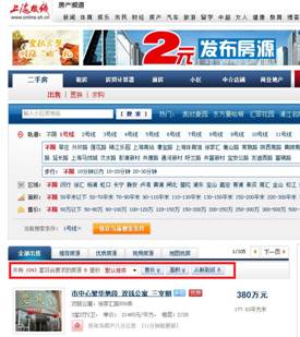 上海热线房产频道建设在酷灵搜索产品之上,提供了以下4项基本功能: